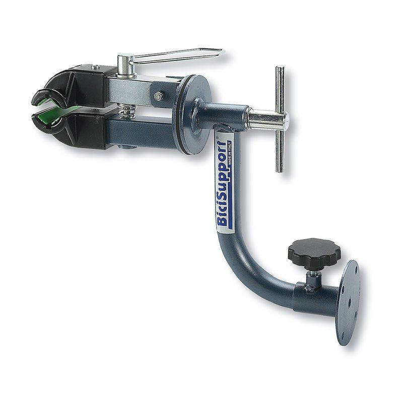 mordaza de taller para sujetar la bici con fijación a la pared.