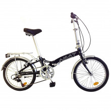 Características: - Llantas 20 MACH1 - Cuadro aluminio plegable - Potencia plegable - Transmisión SHIMANO 6V - Mando REVOSHIFT - Frenos V-BRAKE - Sillín negro con muelles - Guardabarros acero - Portabultos aluminio - Colores: dorado o negro Dimensiones: 80 x 45 x 70 cm (plegada) Peso: 13,4 kg.