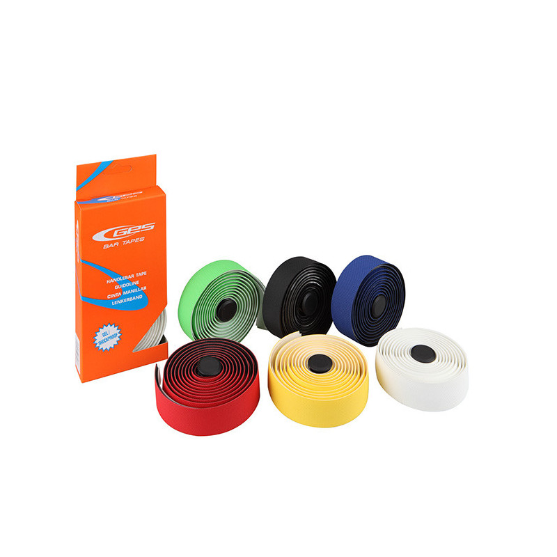 Cinta de manillar con gel para aumentar la comodidad de agarre. Absorbe mejor las vibraciones. Disponible en los siguientes colores: negro,blanco, rojo, azul, amarillo y verde-