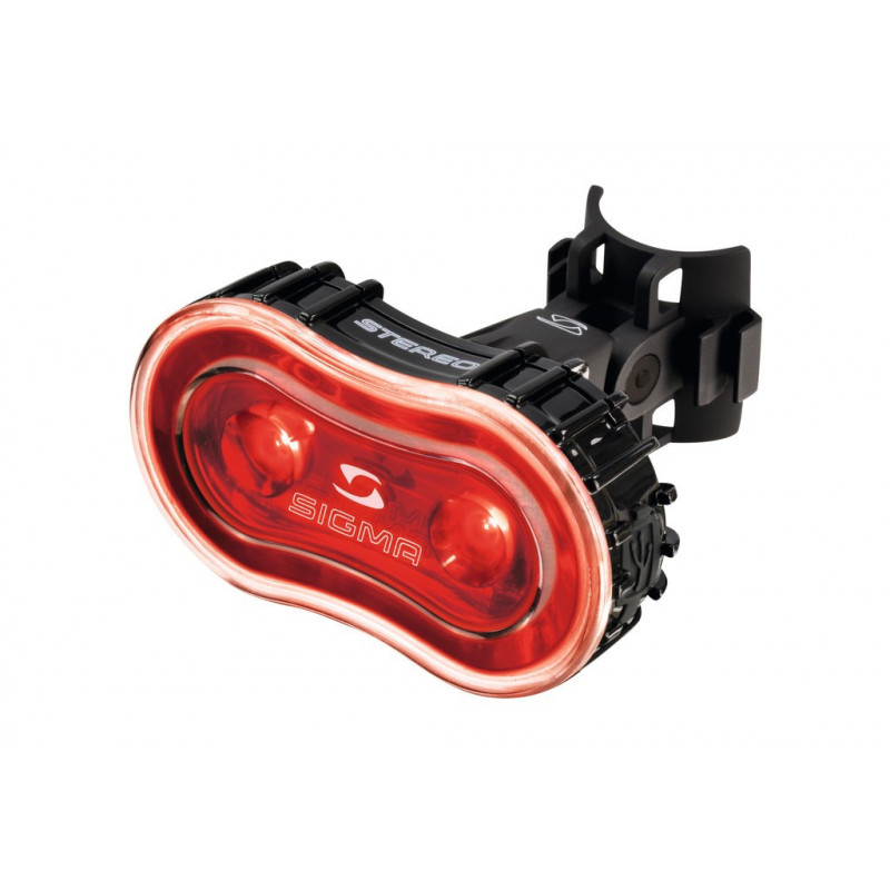 SIGMA LED Luz trasera Stereo • Luz trasera LED de pilas con MICRO-USB integrado con función de recarga • 2 0,5 vatios High Power LEDs • muy buena percepción a ravés del SIGMA LOOP-LIGHT-SYSTEM • Tiempo: aprox. 20 h • 2 niveles indicadores de pilas • cambio de pilas fácil y sin herramientas (incluido 2 Pilas x AAA RTU) • Ajustable vertical, soporte extraíble con función Twist-Lock • Montaje sin herramientas anillo O, también posible con bridas • Interruptor Klick táctil ON /OFF • A prueba de agua • Peso: aprox. 70g