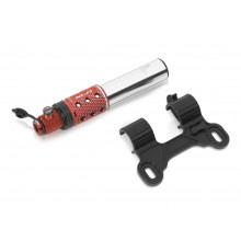 XLC Minibomba PU-A08 • Bomba de aluminio superfina, elaboración CNC • Peso: solo 50g • Longitud: 120 mm • Manguera extraible con tapa cubrepolvo, DV/SV/AV • Cabeza de bomba individual a DV/SV o AV ajustable • 11 bar/160 PSI • Includio soporte