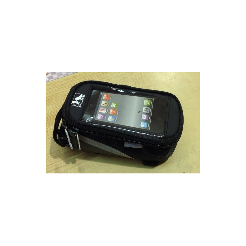 Bolsa para llevar el móvil y más objetos. Esta se pone en la parte superior delantera del cuadro, permitiéndote manipular el móvil sin necesidad de sacarlo de la bolsa