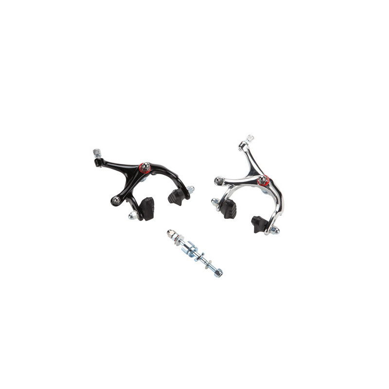 Puente de freno de eje simple para bicis fixie. Se vende solo una unidad y lleva los dos ejes para que podáis colocarlo delante o detrás. Disponible en negro o en plata. Permite distancias de llanta a centro freno de 47-57 mm, es decir, para las bicis de carretera antiguas.