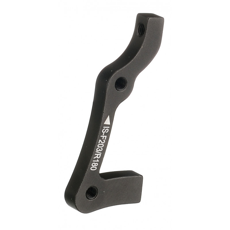 • adaptador para poner una pinza de freno de disco de tornillo frontal (postmount) en una horquilla con el sistema de tornillo lateral(standard) y que lleve disco de 203 delantero o 180 trasero.