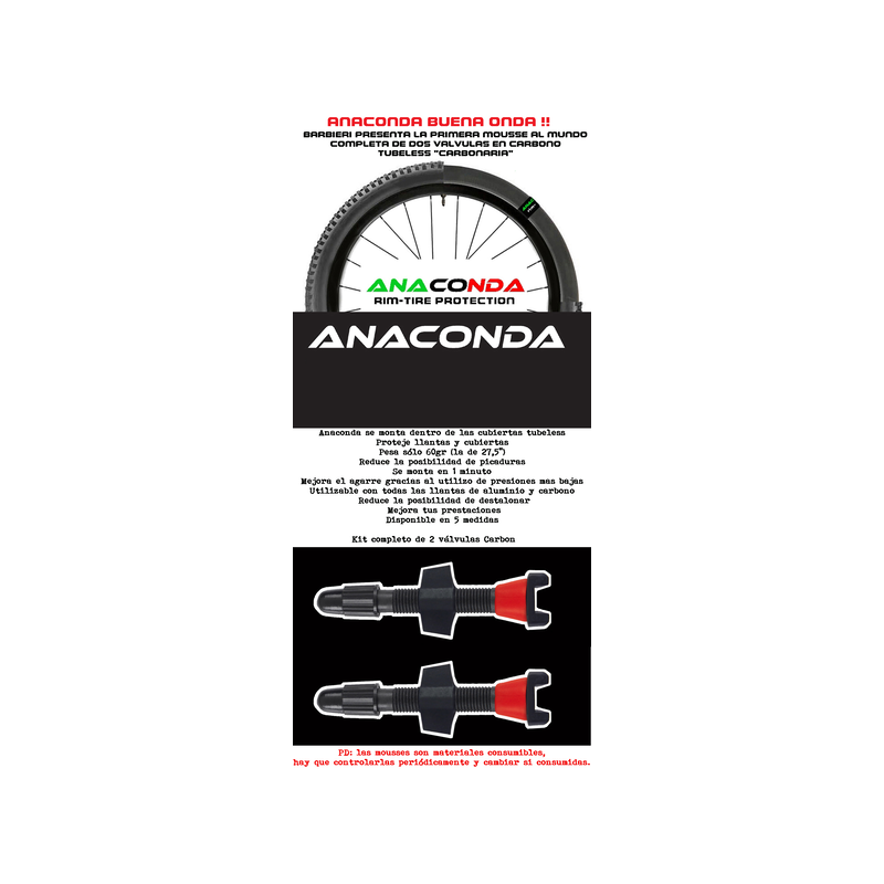 • Anaconda se monta dentro de las cubiertas TUBELESS.