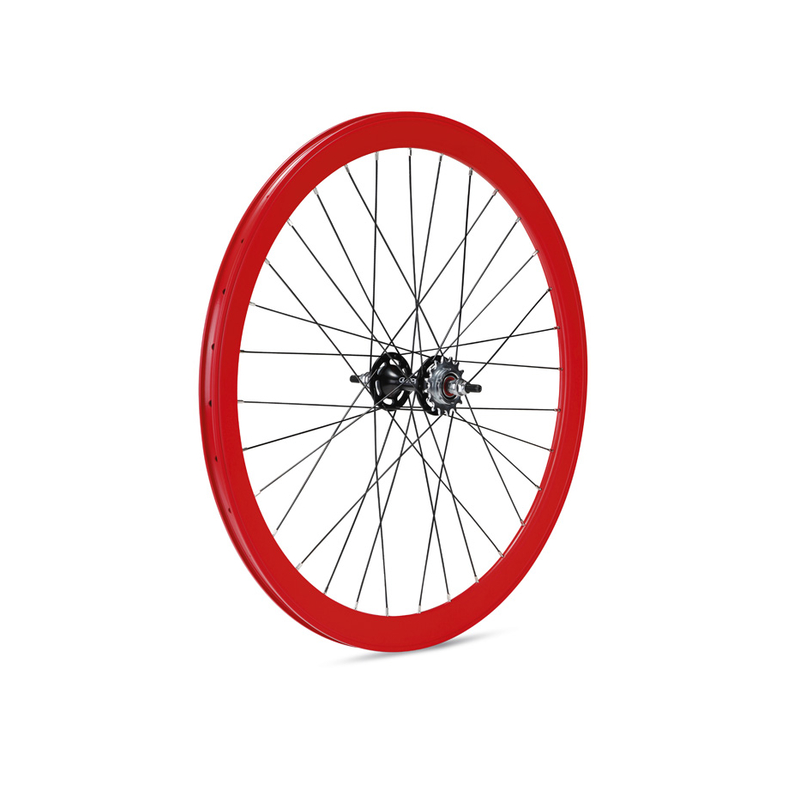 rueda fixed con llanta de colores en 30mm o en 42mm y buje contrapedal en color negro.