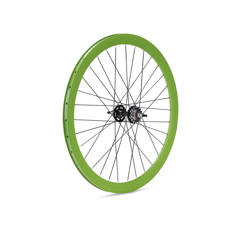 rueda fixed con llanta de colores en 30mm o en 42mm y buje contrapedal en color negro.