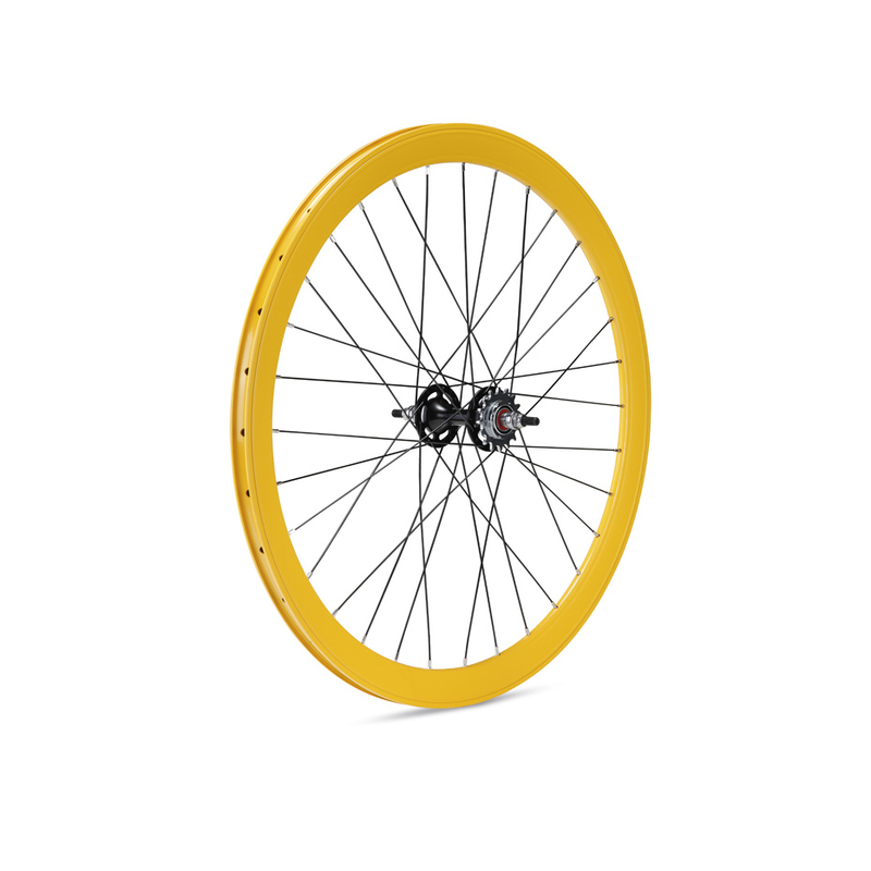 rueda fixed con llanta de colores en 30mm o en 42mm y buje contrapedal en color negro.